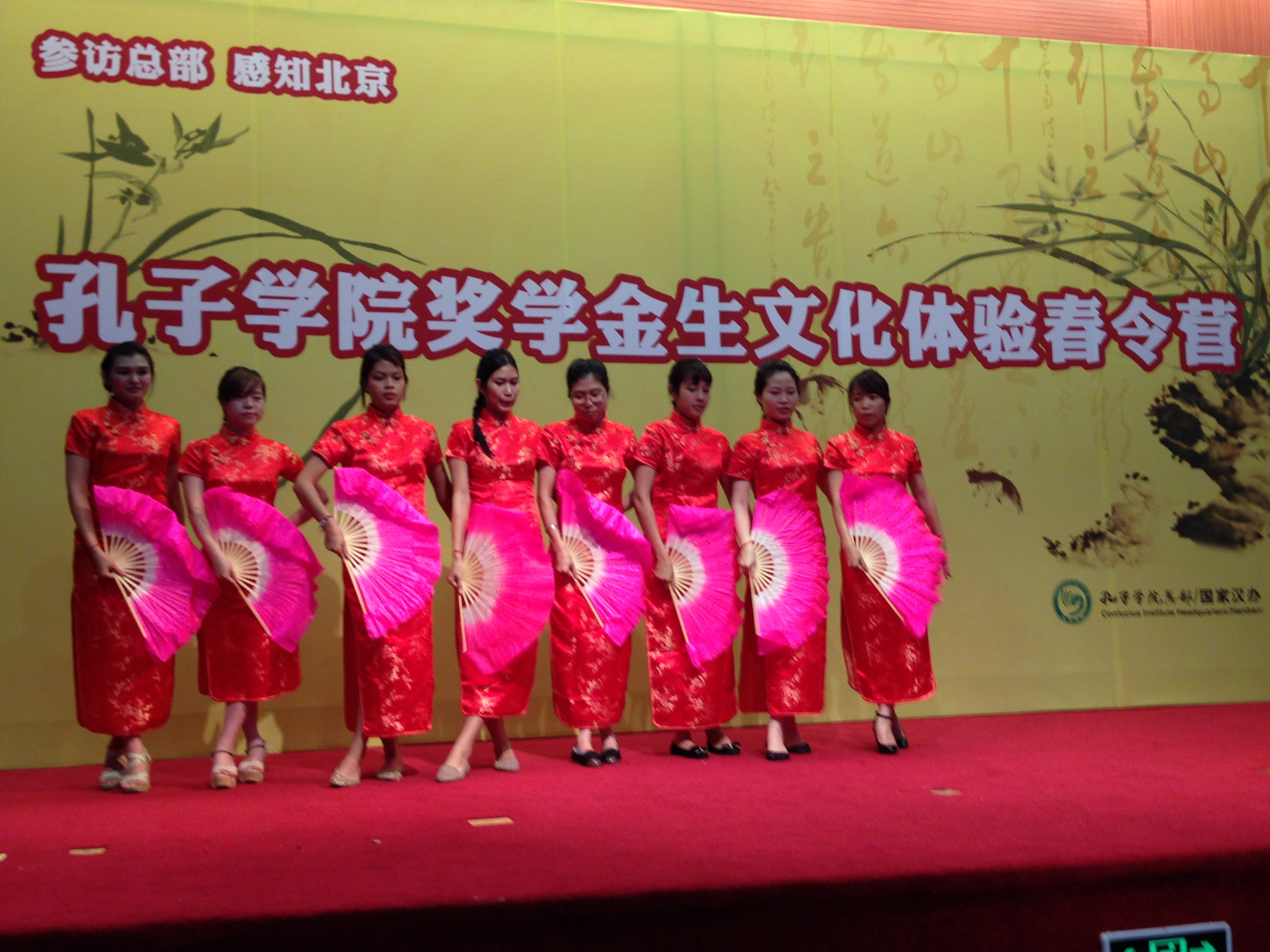 攻读汉语国际教育专业硕士并获得孔子学院奖学金的九名留学生在现代外语及汉语国际教育中心杜瑾老师的带领下在北京参加了2013年孔子学院奖学金生“来访总部、感知北京”文化体验春令营活动。