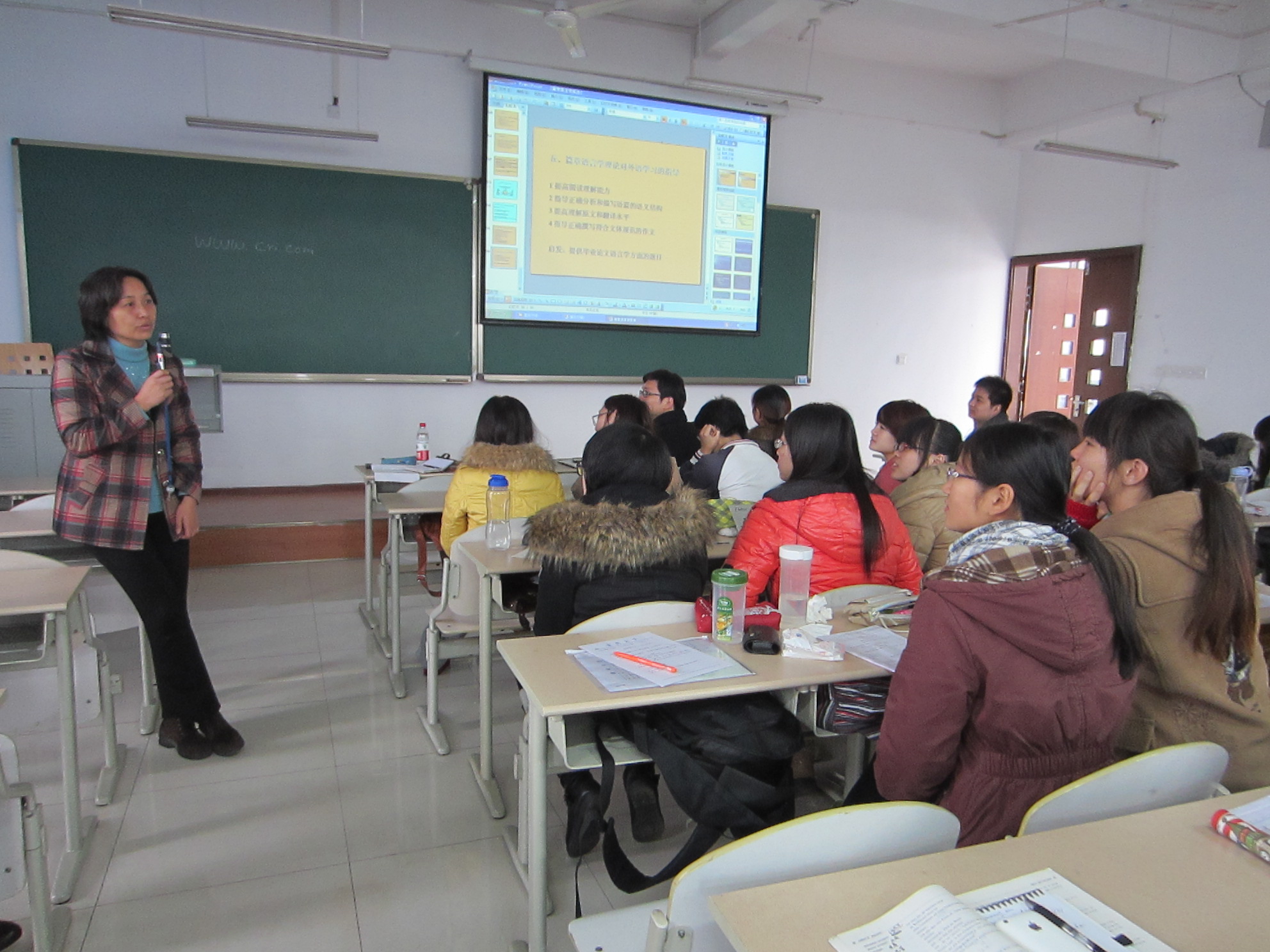 下午第二场讲座,孔德明教授把讲座重点落在了德语学术论文写作的方法和规范上。她针对德语专业本科毕业论文撰写介绍了基本写作步骤,如如何选题与限定范围,如何收集材料,如何规划主体结构等。她还以我专业大四学生的论文题目和结构为例作了详细的点评与指导。最后她还就大四学生明年3月即将参加的德语专八考试提出了相关建议。