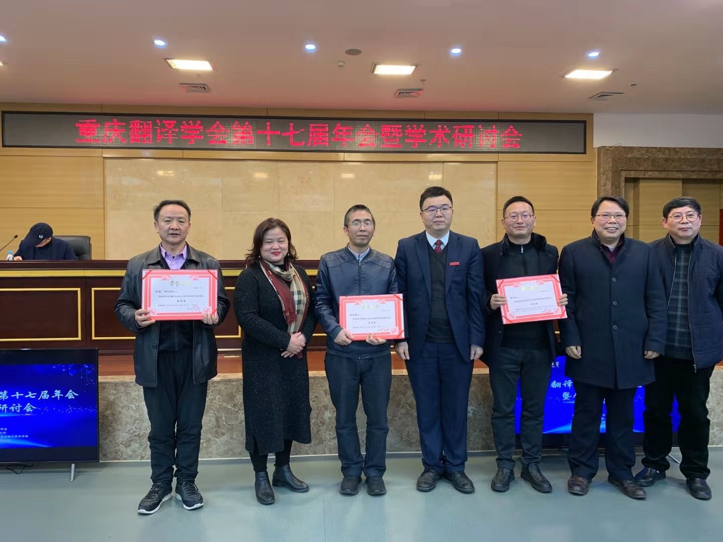彭静院长、范定洪副院长、李永毅教授及翻译方向部分研究生参加了此次会议。李永毅做了题为 “中外团队在中国文学对外译介中的优势” 主旨发言,引起与会代表的热烈反响。本次会议还评选了重庆翻译学会第五次优秀科研成果,李永毅的译著《哀歌集 黑海书简 伊比斯》获得特等奖,陈晓莉的译著《音乐疗法》获得三等奖,余泽梅的译著《舞动疗法》获得优秀奖。在换届选举中,李永毅当选为重庆市翻译学会副会长,陈晓莉、范定洪、余泽梅、陈梅当选为理事。