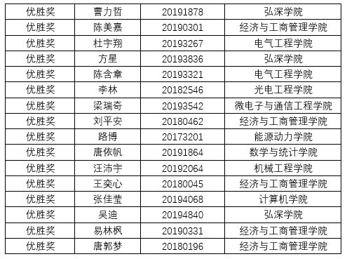 所有获奖选手(获奖名单见下表)的奖项将于2020年下半年外语文化节期间颁发。同时,外语学院将从获奖选手中选拔进入“外研社·国才杯”重庆赛区各大赛的参赛选手,选手将接受专业教师的培训与指导,为参加本年度10月下旬举行的“外研社·国才杯”重庆赛区竞赛做准备。