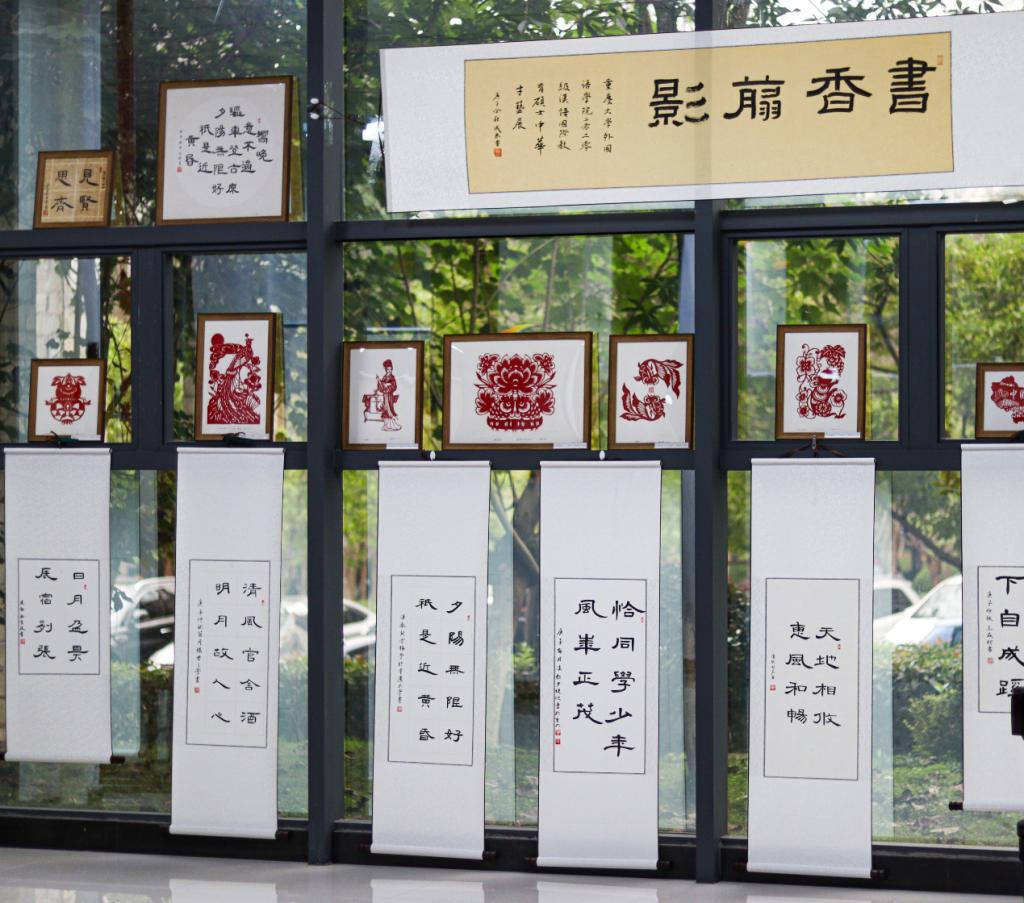 本次展览涉及的作品包括书法、剪纸两个部分,共展出中外学生书法作品22幅、剪纸作品23幅。