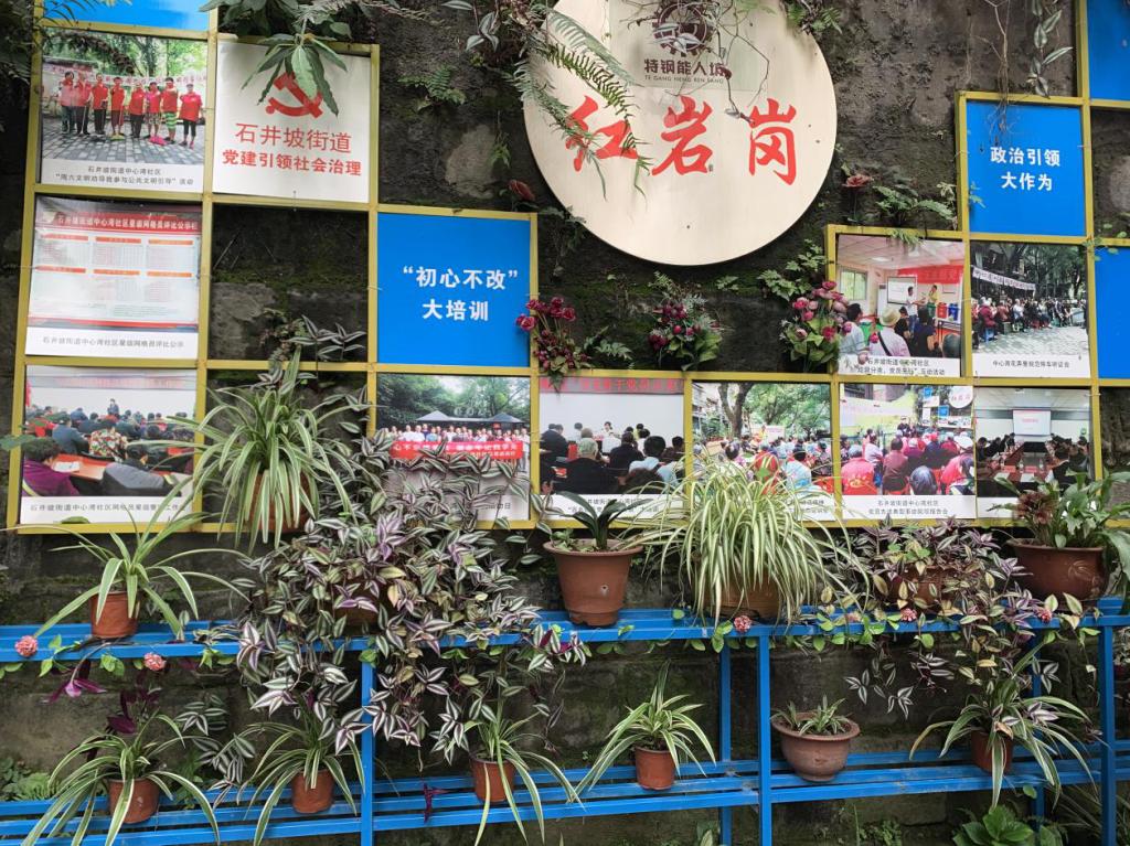 当同学们走进石井坡街道中心湾社区——花弄里,会发现自己进入了城中花园,一片干净、整洁、祥和的景象。居民们发扬特钢精神,自发的给巷子绘上颜色,利用废旧油桶、自行车、破旧轮胎等,通过涂鸦绘画等进行创意加工,将时尚青春的元素和充满岁月气息的建筑有机结合,还原特钢生活的美好回忆,让老旧社区重新焕发出生机。