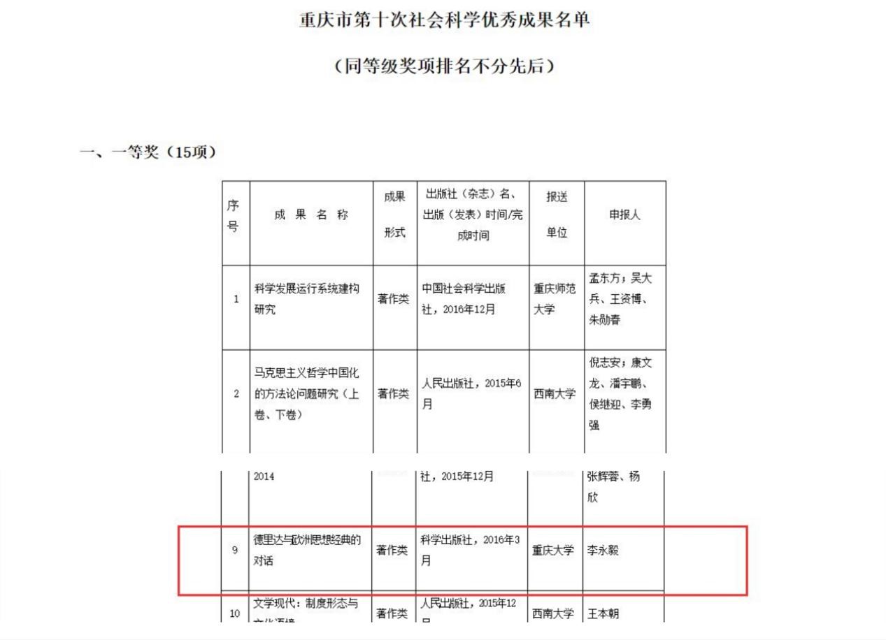 1月4日,重庆市政府在官方网站公布了重庆市第十次社会科学优秀成果奖获奖名单。18漫画