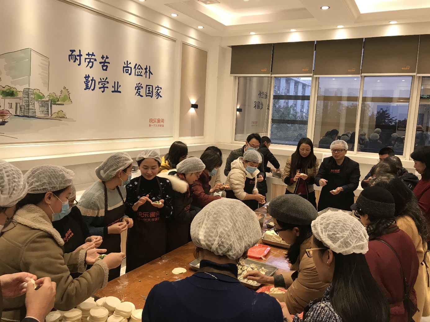辞旧迎新的传统活动——包饺子。在“耐劳苦、尚简朴、勤学业、爱国家”的校训背匾前,全院教职工济济一堂,热情饱满,积极投入到活动中。待热气腾腾的饺子上桌,大家分享自己的劳动成果,比赛的激烈、欢乐,皆入味中,老师们于凛凛冬季中感受到一份特别的温暖。