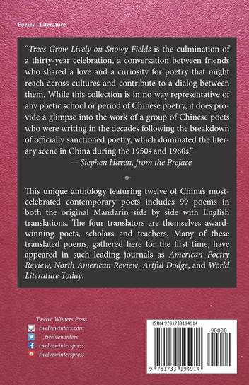 李永毅教授与美国诗人Stephen Haven等人合译的中国当代诗选Tree Grow Lively on Snowy Fields由美国文学出版社Twelve Winters Press出版。这部诗选是三位中国译者与Haven教授在数十年的友谊中合作完成的,收录了99首诗,汉英对照出版。入选的诗人包括郑敏、北岛、多多、芒克、王家新、童蔚、莫非、蓝蓝、余怒、杨键和唐丹鸿。李永毅教授与Haven教授合作翻译了其中的49首,另外他自己的作品《天命》(Destinies)组诗也收入书中。