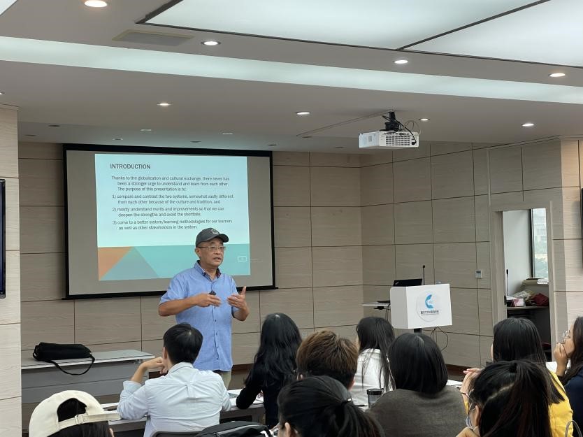 501会议室为汉语国际教育专业研究生带来主题为“从语言学角度看中西教育异同”的讲座。孙浪教授是加拿大UBC大学当代语言教育博士,于2005年至2017年间担任加拿大UBC大学继续学习学院语言文化系主任,在中西方文化及教育研究方面造诣颇丰,研究成果丰厚。