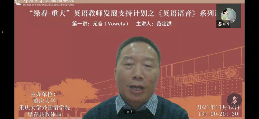 党委组织的“绿春-重大”英语教师发展支持计划系列讲座之“英语语音”的第一讲通过在线方式顺利举行,讲座由*18漫画