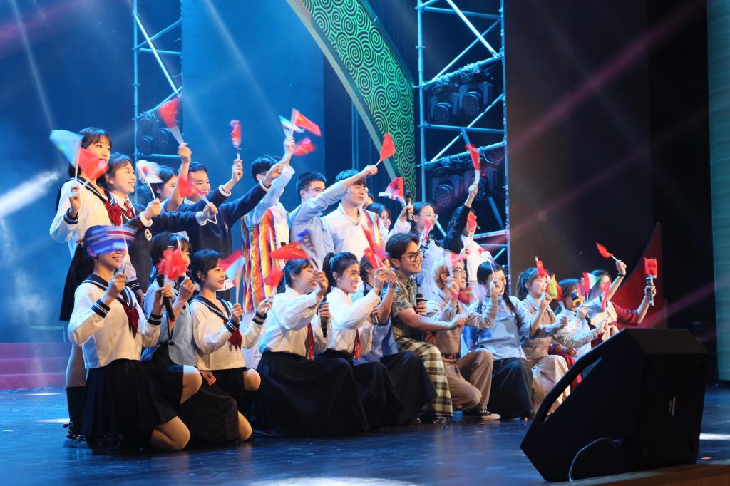 的多国语言版《少年·中国说》是由25位青春活力的表演人员组成的表演团队。同学们运用中文、韩语、意大利语、阿拉伯语以及西班牙语等八国语言,采取朗诵梁启超先生的《少年说》和演唱歌曲《少年》的相结合的形式展示出当代中国少年的青春活力和积极向上的精神面貌,以庆祝党的百年华诞。