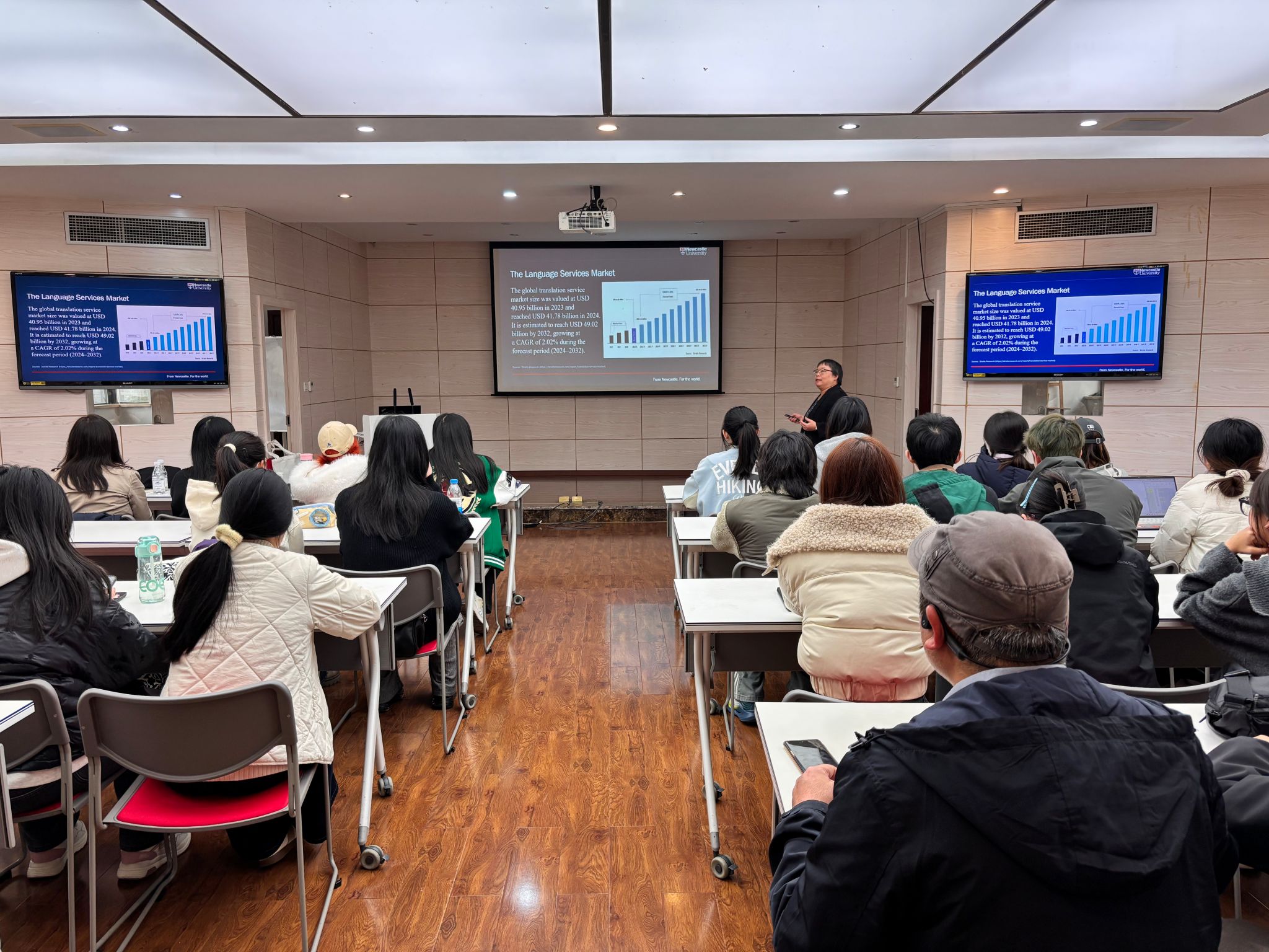 主讲人强调,随着AI技术在翻译行业的广泛应用,翻译和本地化专业人员必须不断学习,持续培训,提升技能,以适应行业的变革,保持竞争力。她们还为有志于从事口译和本地化的同学提供了实用的职业发展建议,帮助同学们为未来的职业发展做好准备。