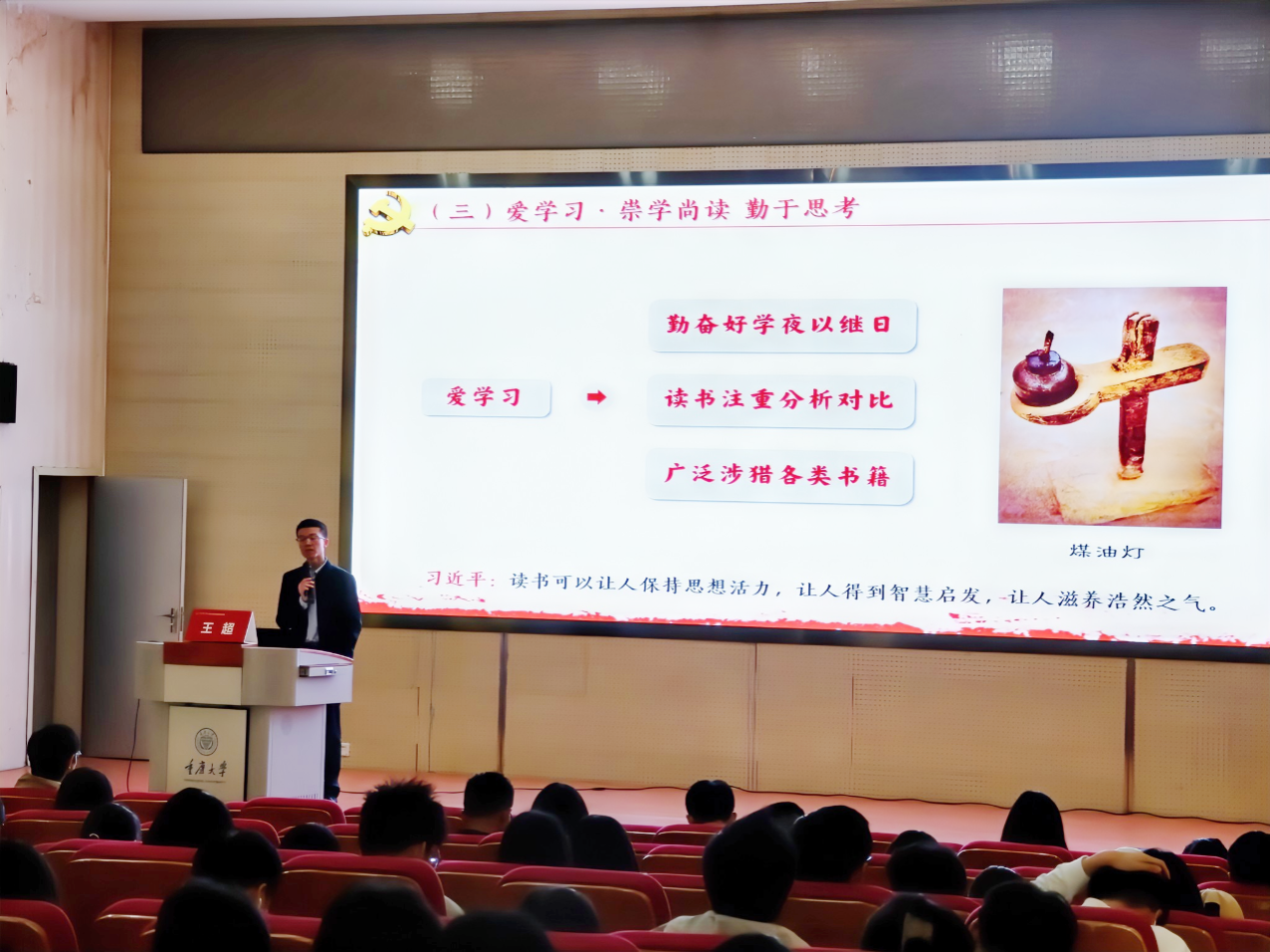 为激励入党积极分子砥砺奋进,激发家国情怀以及为党和人民事业努力奋斗的历史责任感、使命感,2024年3月31日上午,虎溪校区联合党校组织入党积极分子讲座讲学第二讲,重庆红岩干部学院副教授王超受邀担任主讲。