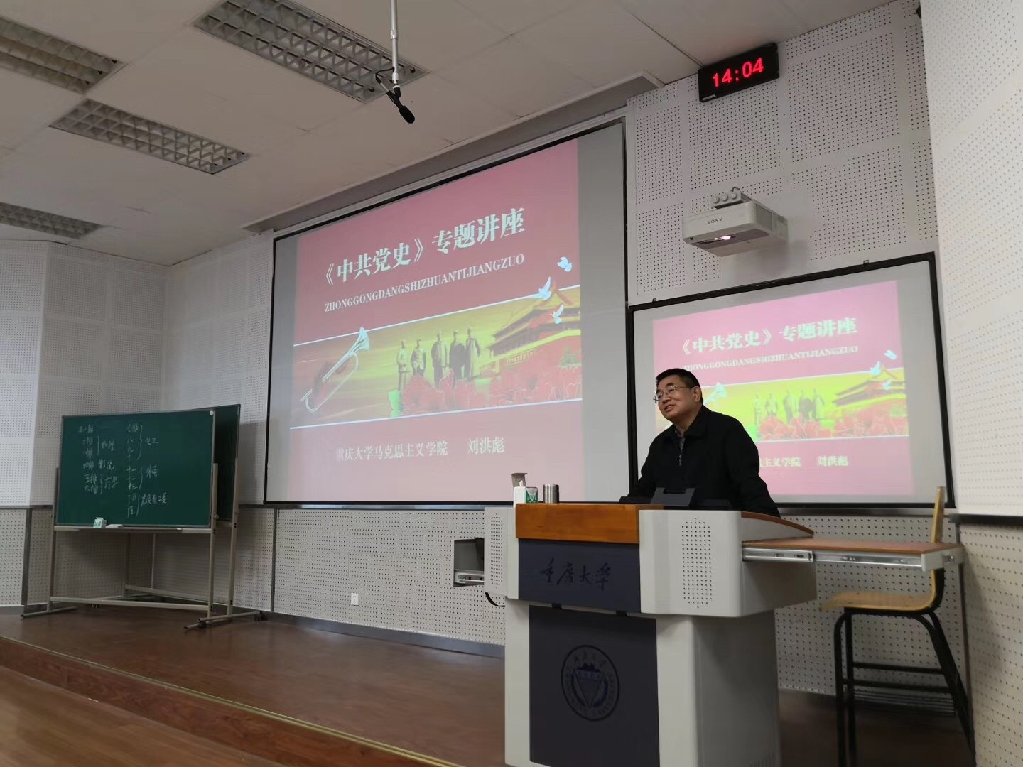 “历史是最好的教科书,我们要在对历史的深入思考中做好现实工作、更好地走向未来。”刘洪彪老师以习近平总书记的话打开了专题讲座《中国共产党党史》的开端。他表示,要加入一个组织,必须得先了解这个组织,而了解这个组织,就必须懂得它的历史由来。刘洪彪老师首先从中国共产党的伟大历程讲起,分别从“民主革命,救国救民”“社会主义,利国利民”“改革开放,富国富民”这三个历史阶段讲解了中国人民站起来、干起来、富起来的历程。刘洪彪老师讲述了中国人民在寻求出路的过程中出现的社会变革及其历史意义,引领大家回望那段可歌可泣的历史。在反抗侵略、不断斗争的过程中,涌现了一批批民族英雄,当刘教授讲起狼牙山五壮士、杨靖宇、赵一曼等革命党人的感人事迹时,同学们为之深深动容。