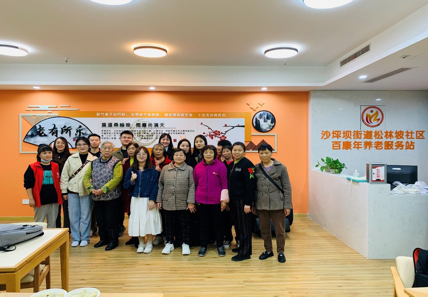 党员发展对象第三小组的全体同学来到沙坪坝街道松林坡社区百康年养老服务站开展实践学习活动。