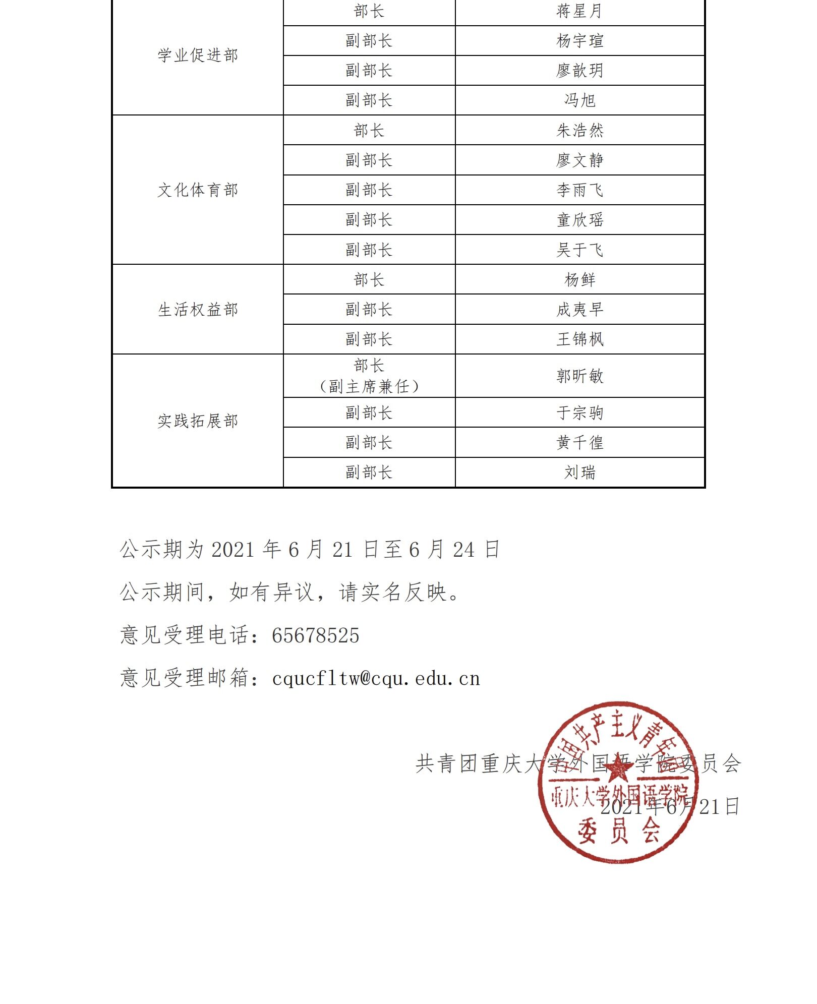 关于*18漫画 2021 年团委学生会干部 换届选举结果的公示