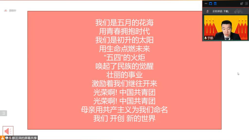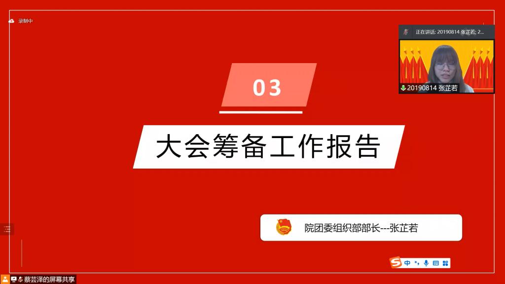 会议伊始,主持人于航同志带领与会人员齐唱共青团团歌。在悠扬的歌声中会议进入第二项,院团委书记汪俣婧老师宣读上级团委文件《关于开展18漫画 2021年度共青团评议工作的通知》。根据通知精神和要求,张芷若同志代表院团委向会议与会代表做大会筹备报告。在大会筹备报告中,张芷若同志向与会团员代表简要汇报了本次大会的筹备工作,同时向各与会代表和工作人员表示感谢,并预祝本次会议取得成功。