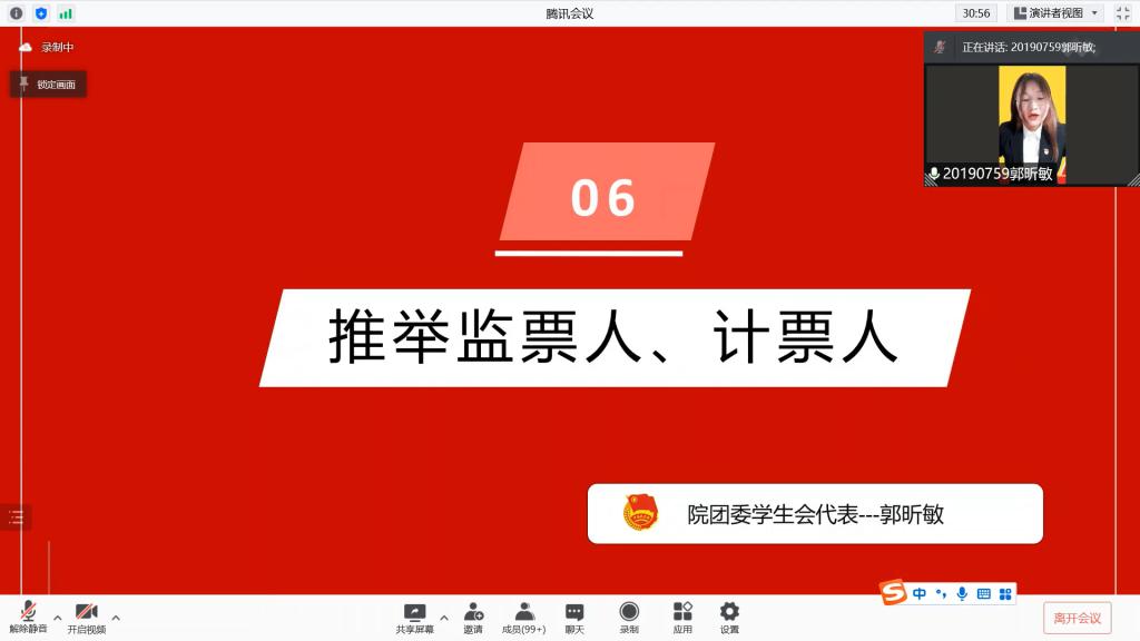 院团委研究生分团委书记陈美玲同志宣读会议评选办法,并向大会提请讨论审议。与会代表审议无误后,由院团委学生会主席团成员郭昕敏同志提名院本科生党支部代表夏宁尉同志为本次大会的计票人,测评团员代表汤德馨同志为本次大会的监票人。无异议后,会议主持人于航同志按照评议文件各项要求和精神,组织与会团员代表对*18漫画 团委2021年度团组织工作进行评议。在对投票结果进行统计核查时,院团委书记汪俣婧老师、院团委副书记蔡芸泽同志分别对团务工作和团员推优入党答等内容进行详细讲解。
