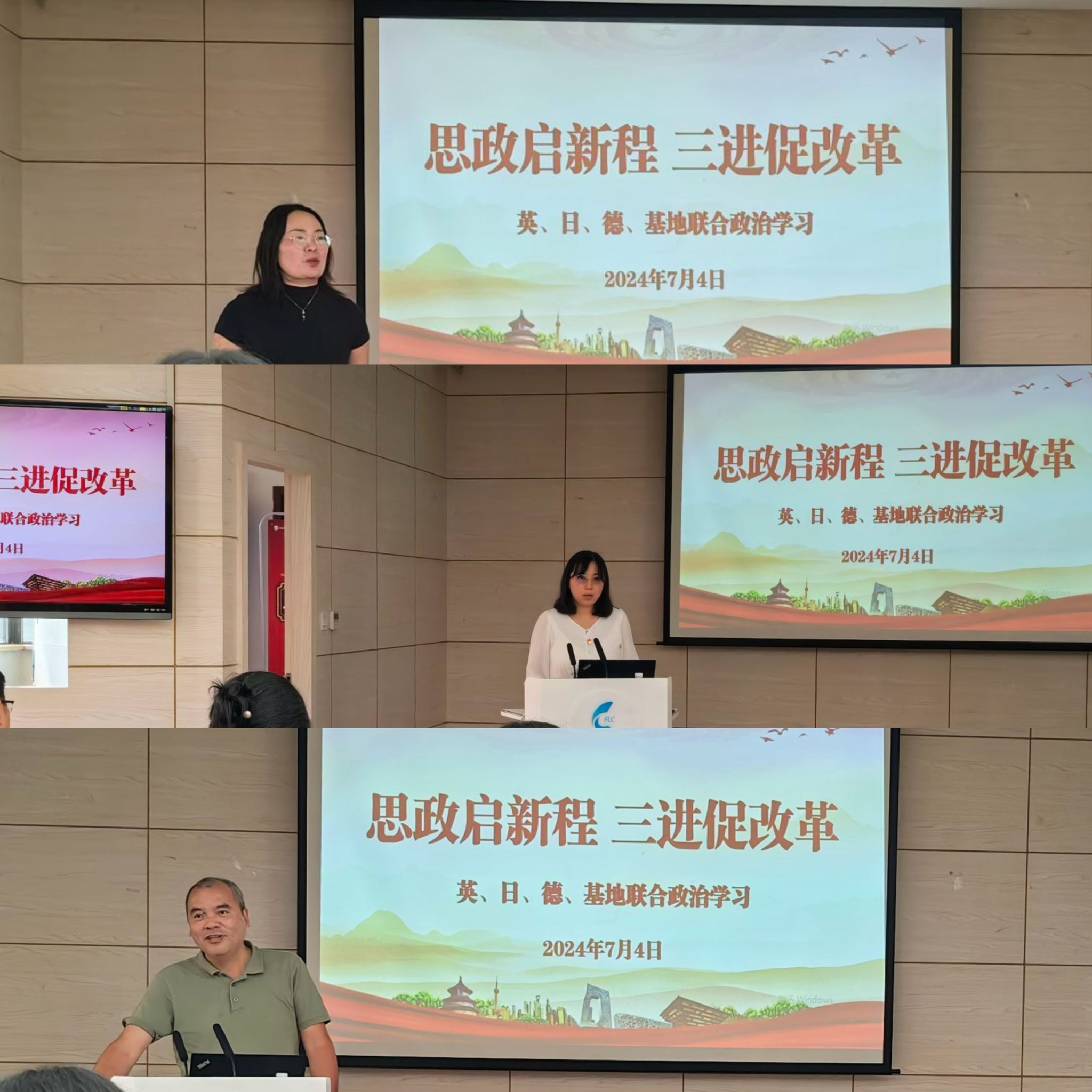 在交流分享环节,各专业系代表分别从不同角度阐述了如何在教学实践中推进“三进”工作。他们通过生动的案例和详细的解说,展示了将《理解当代中国》系列教程应用到专业教学后的显著成效,赢得了在场教师的阵阵掌声。