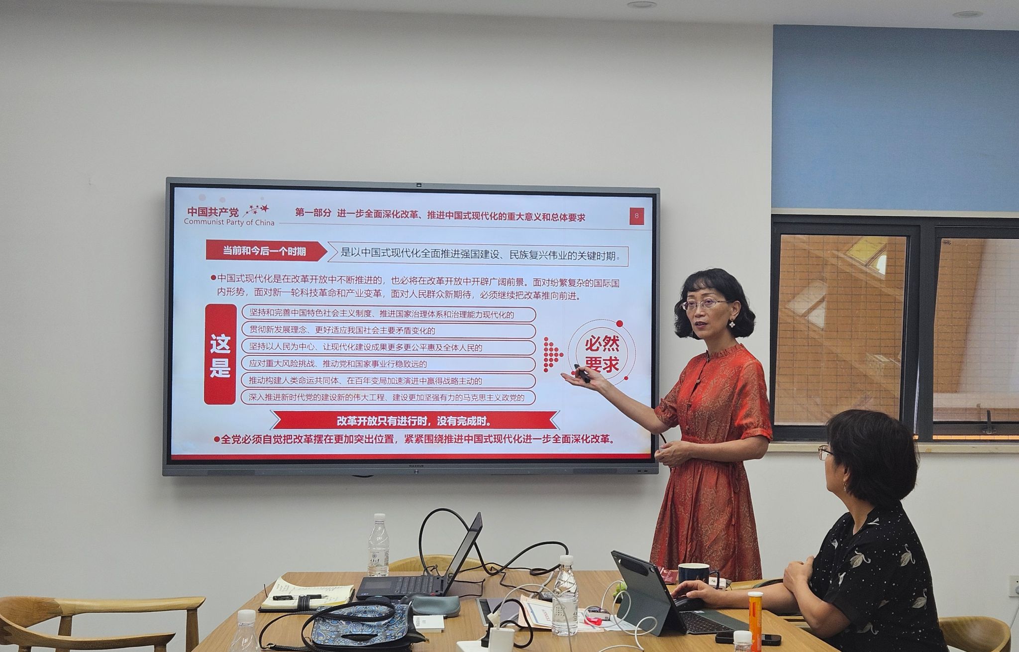欧玲对党的二十届三中全会通过的《中共中央关于进一步全面深化改革 推进中国式现代化的决定》做了详细解读,重点对进一步全面深化改革、推进中国式现代化的重大意义和总体要求,构建支持全面创新体制机制,完善高水平对外开放体制机制,提高党对进一步全面深化改革、推进中国式现代化的领导水平等四个部分进行了阐述。