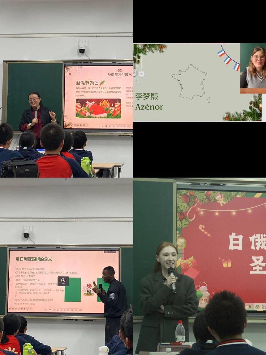 国际中文教育教工支部一直在不断探索新的实践路径。2024年11月7日,重庆市来华留学工作专家、支部书记龙藜副教授携手来自法国的李梦熙、白俄罗斯的琳娜以及尼日利亚的张瀚文三位留学生,为重庆一中名校联合中学的学子们呈现了一场主题为《探秘圣诞——原来文化如此多样》的精彩讲座。
