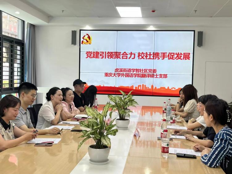 原党委书记欧玲、虎溪街道党工委代表、学智社区党委成员及翻译硕士党支部党员同志参与活动,通过实地调研与座谈研讨相结合的形式,共探校社合作新路径,共谋基层治理新动能。