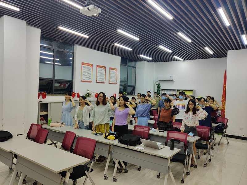 首先,大家一起观看了《话说党史》短片,回顾中国共产党走过的99载风雨历程,体会党的艰辛创业历程。接着,学术研究生二支部副书记裘曼霞同志带领两个支部的党员同志面对党旗,庄严宣誓,重温初心和使命。