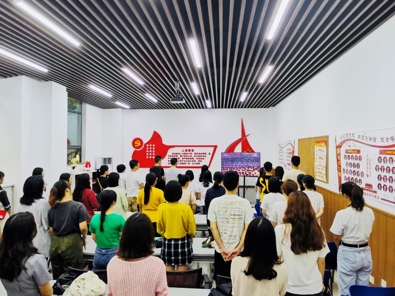 党委组织师生党员在学院楼105党员活动室集体观看国庆庆典直播。聆听习近平总书记讲话、观看阅兵仪式,师生党员备受鼓舞,纷纷发表感言。