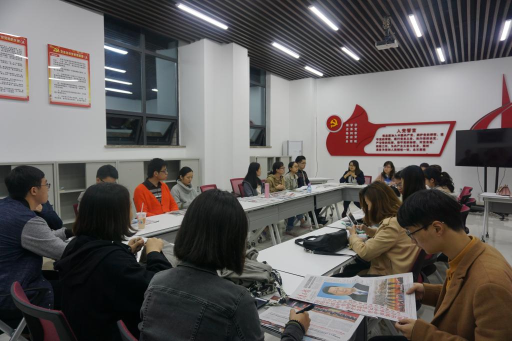 105党员活动室召开了专题组织生活会。此次会议主要议程为发展和吸收预备党员和学习党的十九大精神,会议由党支部书记张文静老师主持。