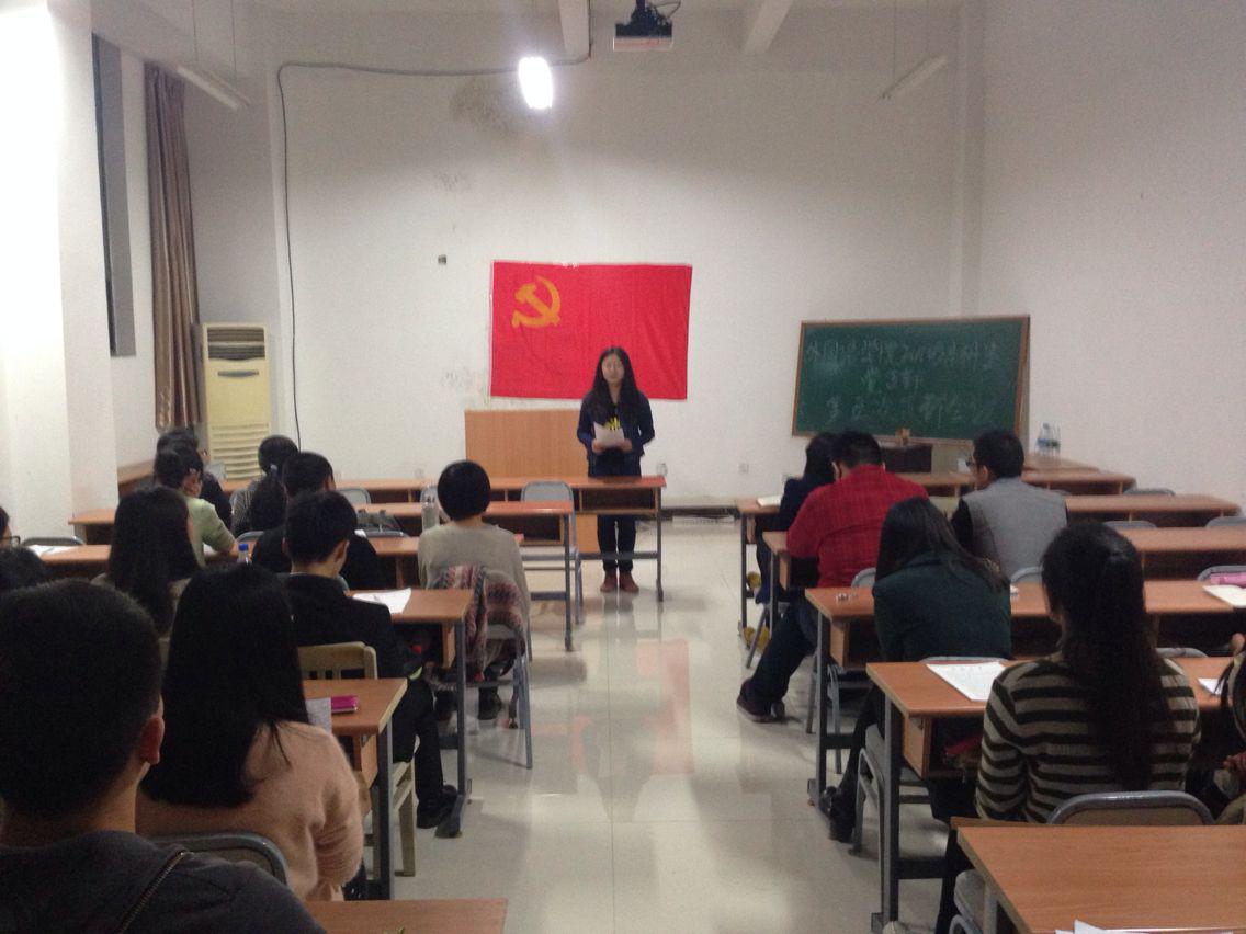会议由组织委员黄凌轩主持,整个会议的流程大致分为三个部分,第一部分是6名预备党员转正,第二部分是发展大四上学期第一批预备党员,第三部分是党支部书记张文静老师带领新入党的党员宣誓。