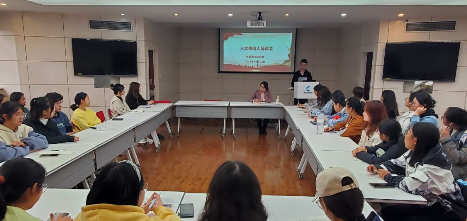 党委在学院楼501报告厅召开2021级本科新生入党申请人座谈会。本次会议由本科生党支部夏宁尉同志主持,学院党委委员、正科级组织员刘培老师,本科生党支部支委委员以及2021级本科生50名入党申请人参与了座谈。