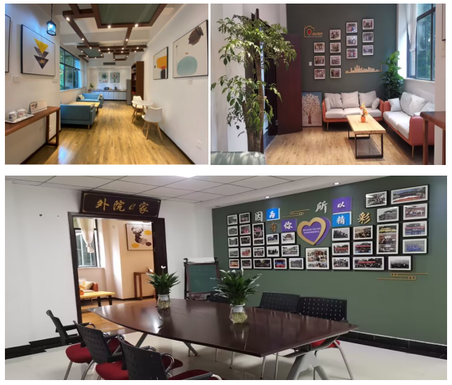 职工小家。院长莫启扬和工会主席晏生宏带着考评小组来到二楼职工小家“外语e家”。晏主席介绍了“外院e家”的含义: 1.谐音“外院一家”,体现外语人的团结;2. “e”反映了“e时代”的生活方式;3. “e”是英文单词ease的简写,反映职工小家是外语人放松、休闲的地方。验收组同志们纷纷表示,该名称充分体现了小家的含义,非常有外语文化特色。