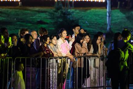 夜幕降临,国际学生们前往4A级景区奇彩梦园观看铜梁火龙表演。铁水如漫天流星般在夜空中绽放,舞龙人的狂野有力、灵动飘逸的龙舞表演,让铜梁龙在火树银花中舞动,不少国际学生直呼“太壮观了”,纷纷惊叹于表演的壮丽。