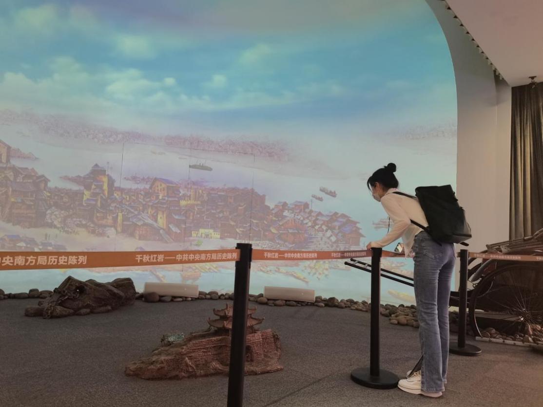 7月23日上午9时,实践团成员来到了回望红岩足迹第一站--红岩革命纪念馆新陈列馆。在实践过程中,实践团成员们通过纪念馆内的革命文物、历史图片、复原场景等,了解到了抗日战争时期我党在国民党统治区内巩固和发展抗日民族统一战线、领导人民群众进行的一系列革命活动,对抗战以来中国共产党的历史以及其中孕育的伟大红岩精神有了更深的理解。在参观过程中,实践团成员们感叹革命征程的不易、崇拜名人志士的智慧、敬佩革命先烈的英勇,并立志努力拼搏、建设祖国,在新时代继续传承和发扬红岩精神。