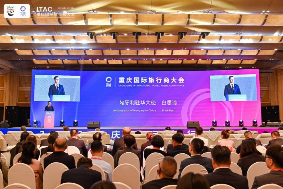 11月21日,2023重庆国际旅行商大会开幕式在江北区召开。来自近30个国家的驻华使领馆官员、旅游管理部门(机构)代表,联合国世界旅游组织、亚太旅游协会等多个国际组织代表,四川、贵州、甘肃、宁夏等西部陆海新通道沿线省(区、市)文化旅游主管部门代表,多家国际涉旅企业、航空公司等代表,约400名中外嘉宾参会,共谋国际旅游复苏发展。