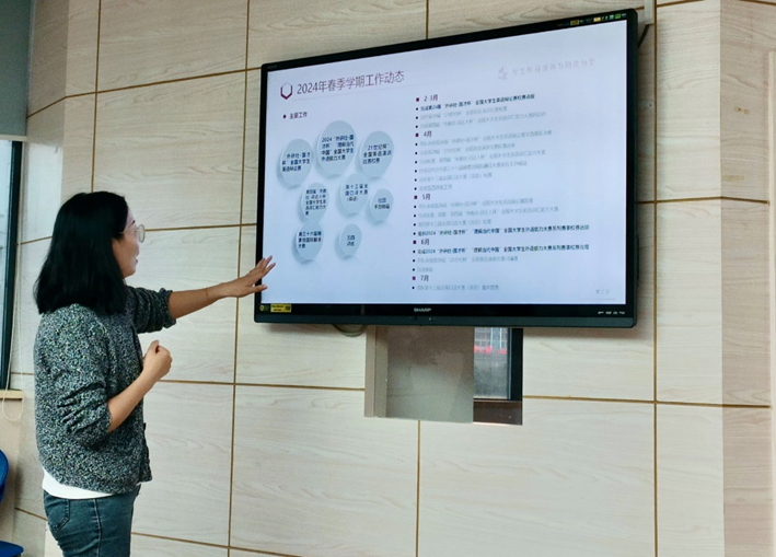 会议伊始,汪老师向全体参会同学介绍了本学期的工作安排。她以时间线的形式展示了协会即将承办的赛事,让同学们初步了解接下来的工作计划。随后,她详细介绍了协会工作开展的规范模式,并仔细梳理了各项赛事工作的执行流程。