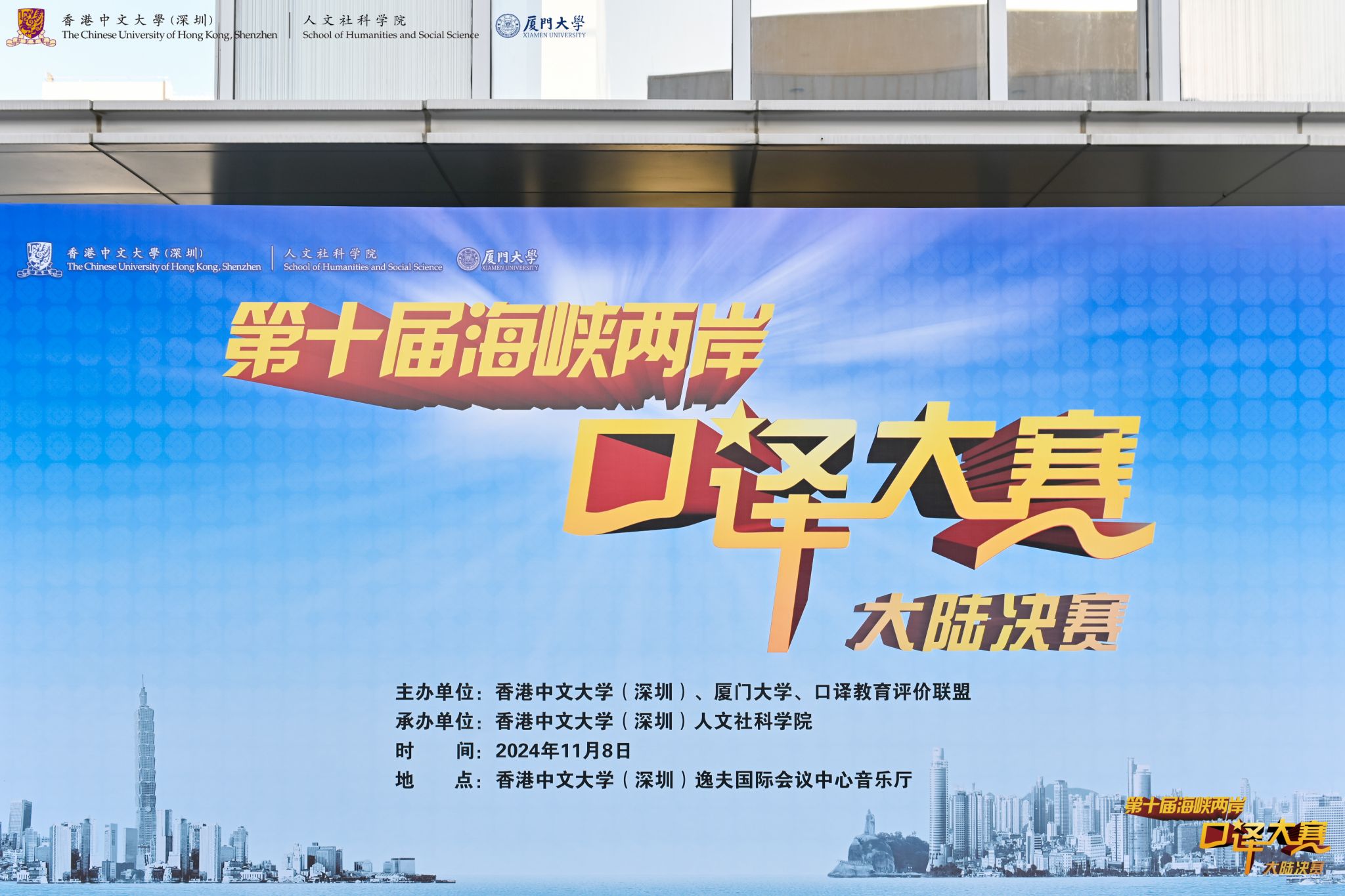 2024年11月8日,第十届海峡两岸口译大赛大陆决赛在香港中文大学深圳校区逸夫国际会议中心音乐厅举行。本次大赛由香港中文大学(深圳)、厦门大学、口译教育评价联盟主办,香港中文大学(深圳)人文社科学院承办。比赛汇聚了来自华中赛区、华东赛区、华南赛区、西南赛区各赛区的晋级选手以及主办方邀请的种子选手。18漫画