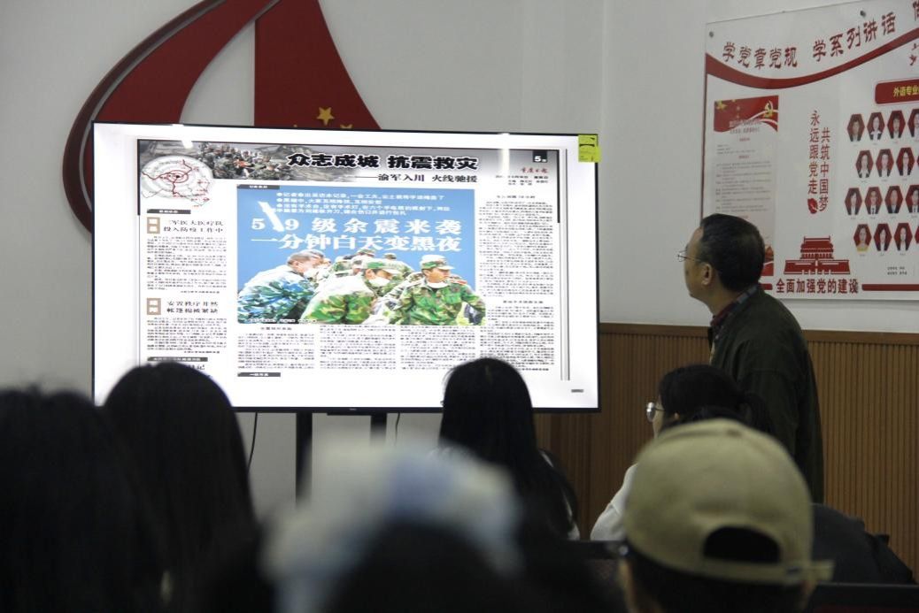 讲座伊始,李志峰老师从专业背景切入,指出外语学科学生具有跨文化视野优势,能够为新闻传播注入独特价值。他通过解析党报与市场化媒体的功能差异,强调新闻工作者应坚守真实性、时效性、准确性原则,并以汶川地震现场报道为例,阐明“没有调查就没有发言权”的职业准则。