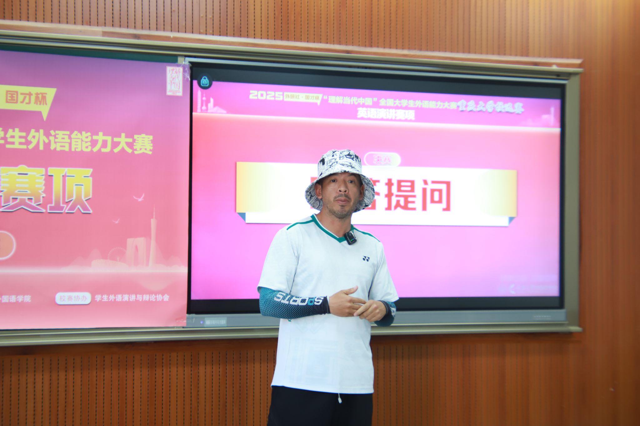 比赛尾声,外教Miguel Garcia对选手表现进行点评。他首先肯定选手们在词汇储备、思维转换及批判性思考能力上的亮眼表现。他建议临场紧张的选手通过多积累实战经验来提升临场表现,并保持耐心与从容心态。他强调外语是沟通工具与文化桥梁,激励选手在交流实践中打磨语言技能、精进自我。最后,他向选手表达双重期许:一是希望他们能未来在教育领域施展才华、贡献力量;二是致谢能在赛事中见证大家的成长蜕变,点赞选手面对挑战时展现的勇气与决心。