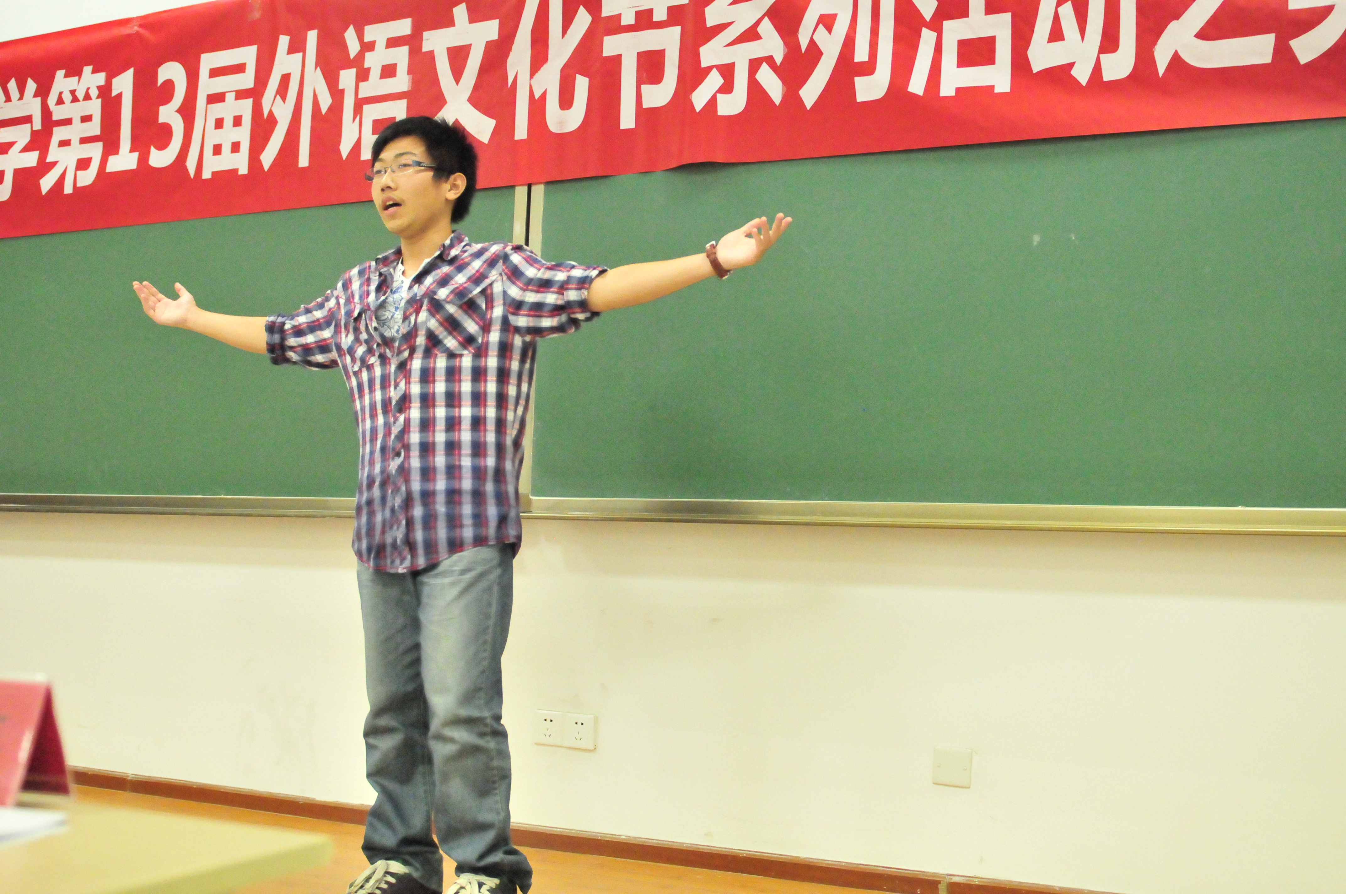 2013926日下午2点,由18漫画 主办、*18漫画 承办的18漫画 第13届外语文化节系列活动之英语演讲大赛初赛于艺术楼隆重举行。18漫画 的27位英语教师受邀担任此次比赛的评委,来自各个学院的大约200名同学参加比赛。
