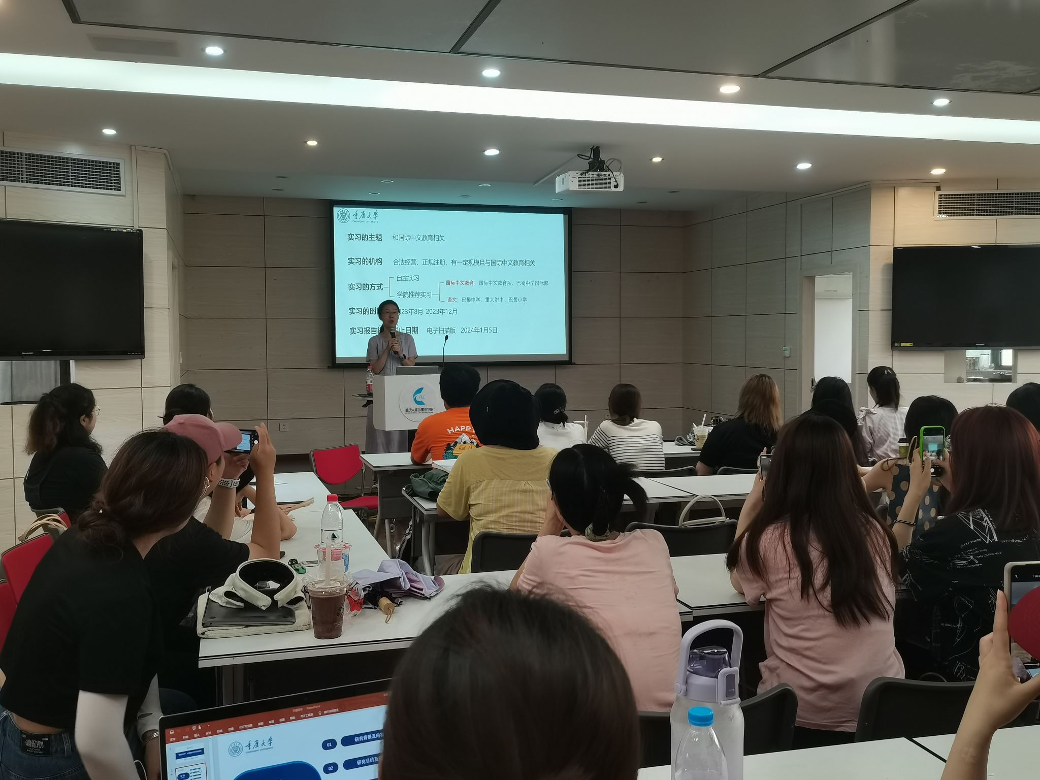 2022级汉语国际教育专业硕士研究生在学院楼501召开2023年秋季学期实习动员大会。本次大会由汉硕专业负责人杜瑾老师主持,2022级全体汉硕专业学生参会。