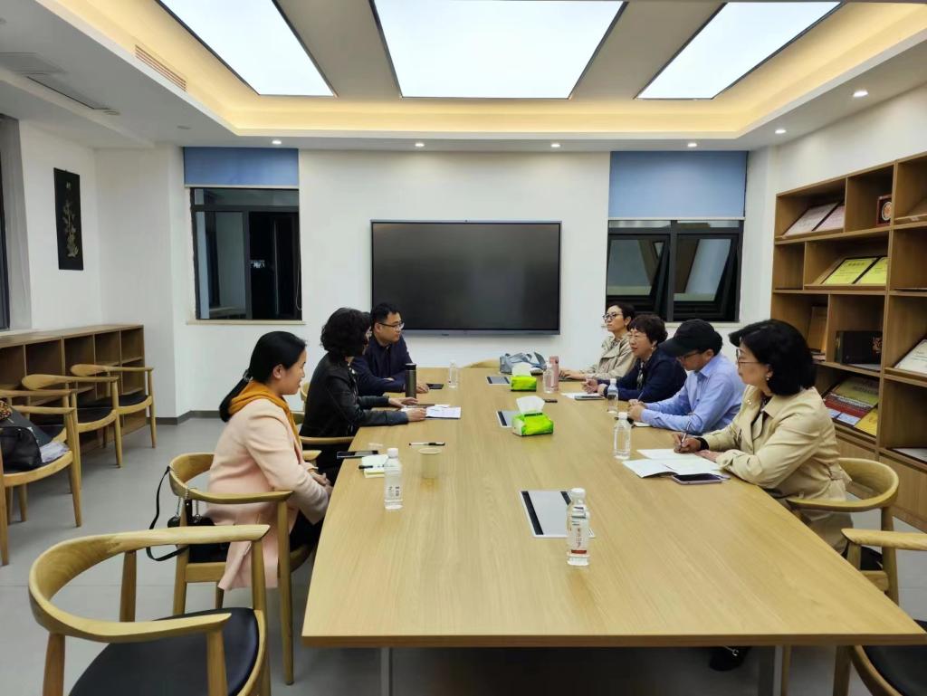 2023年4月7日天津大学*18漫画 大学英语教学部主任江滨老师一行四人来18漫画 交流访问。欧玲书记、莫启扬院长、温忠义副教授、冯玲老师与来访教师进行了交流座谈。