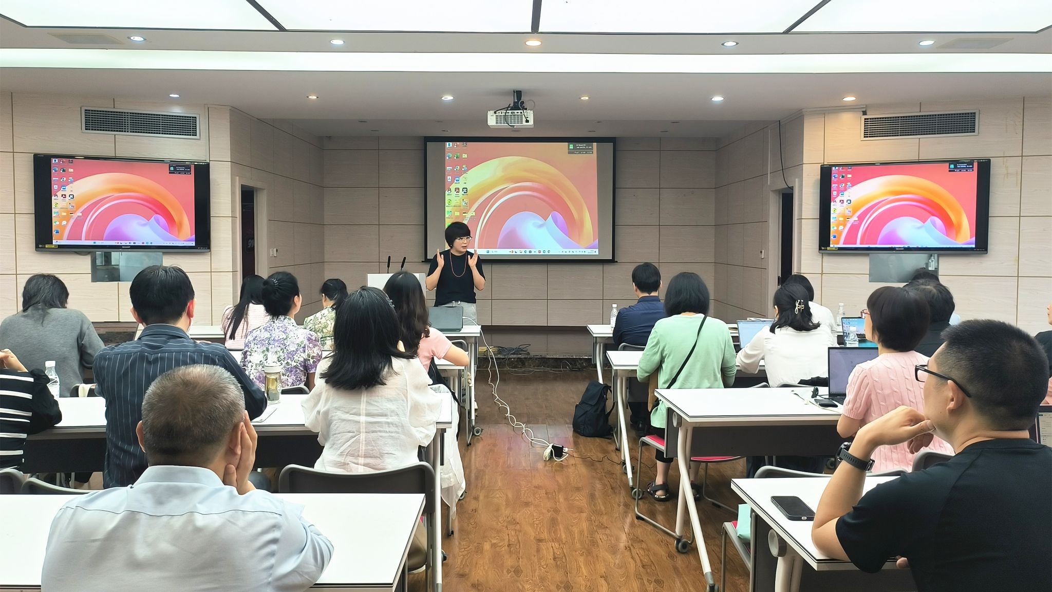 工作坊伊始,覃梦秋老师围绕“AI工具解锁”展开主题分享,全面介绍了人工智能的内涵及其在各平台和工具中的应用,包括AI写作、绘画、音视频制作、数字人等领域。通过实际操作演示和互动交流,教师们不仅亲身体验到了AI技术为外语教学带来的新机遇,还全面了解了当前国内外主流生成式AI模型的种类、特性及应用方法。