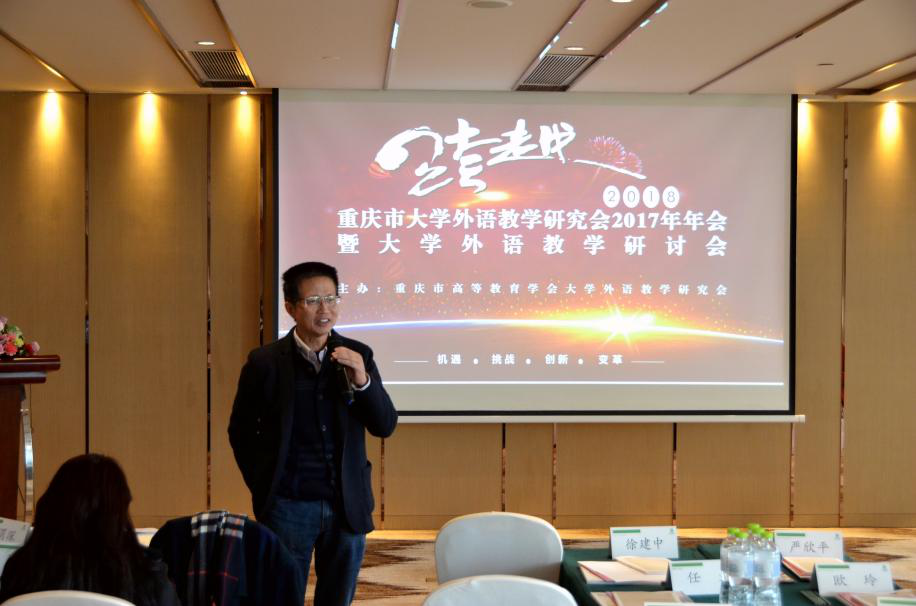 年会的最后一个环节是重庆市大学外语教学研究会会长余渭深教授做总结:我国即将迎来改革开放40周年,英语是我们改革开放、走出国门、提升素养的有力工具。习近平总书记指出,开放带来进步,封闭必然落后。开放必然需要国人外语水平的提升,高校外语教学工作者应当勇于担起自己的责任,关注外语教学改革,更好的为人才培养服务。他殷切希望重庆的高校教师在40周年教改的契机之下,提出新思想,新教法,英雄辈出。