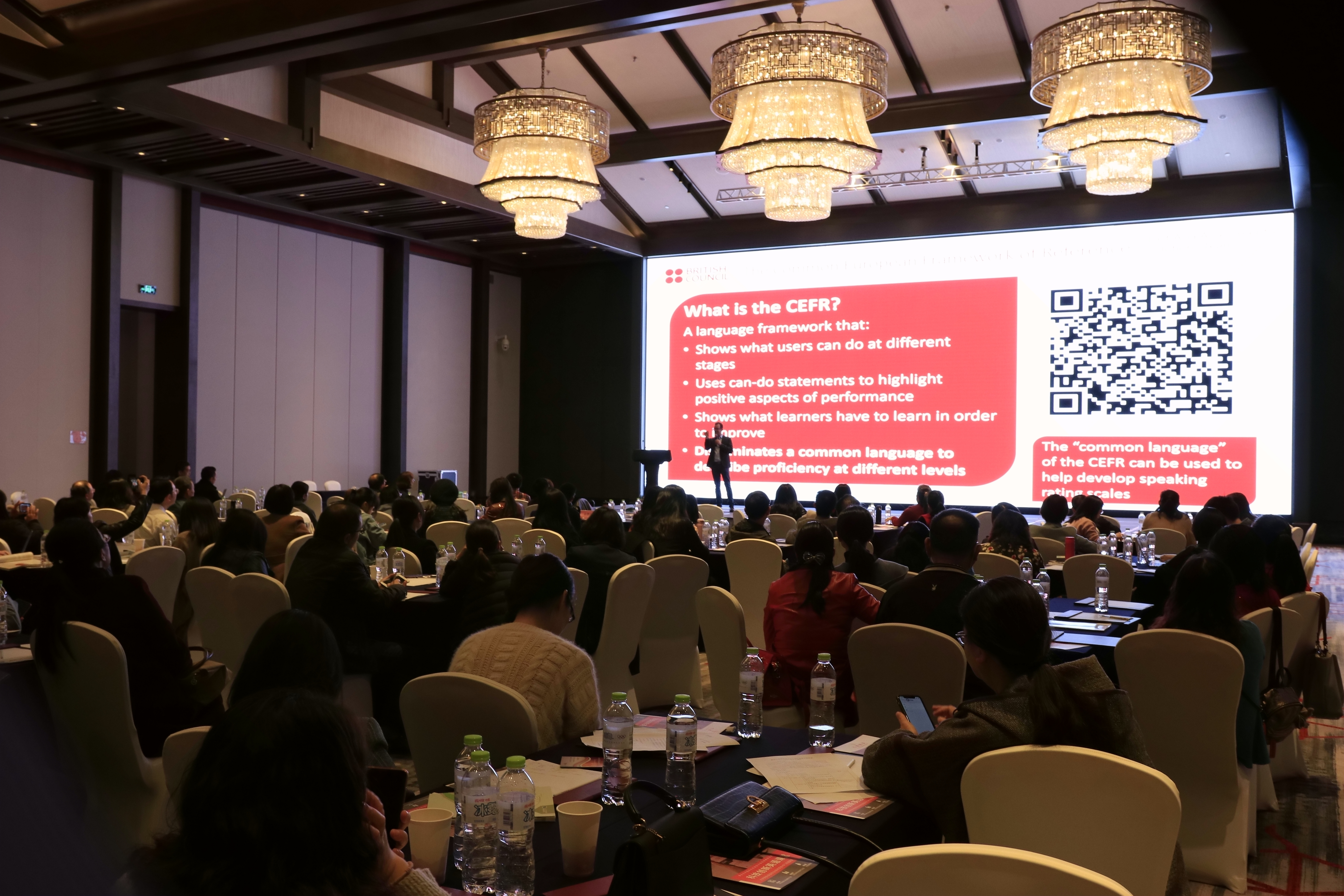 同时,英国文化教育协会William Bayliss从当下测试可靠性问题着手,详细介绍了CEFR(欧洲共同语言参考标准)的定位与应用,深入解读其在教学与评估中不可或缺的作用,并细致剖析其未来发展方向,使与会外语教师充分了解CEFR的裨益,为评估和认证语言运用能力的需求提供了一个指导性框架,对课程设计、教学实践和教学评估等都具有指导意义。