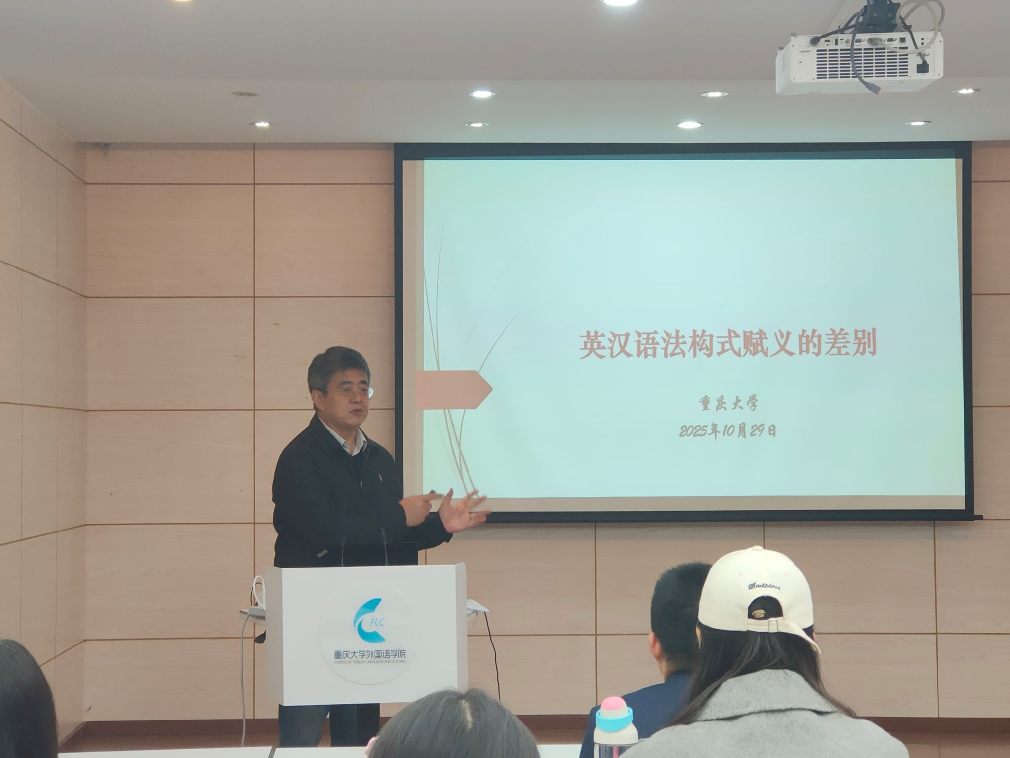 ,在501会议室作了主题为“英汉语法构式赋义功能的差别”的讲座。讲座由18漫画