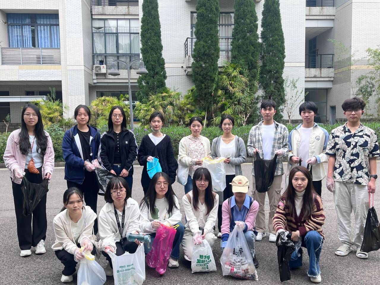 第49期入党积极分子培训学员在虎溪校区第一教学楼和云湖区域开展了一场净化校园环境的志愿服务活动。