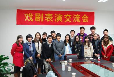 由毛凌滢、盛荔、张宏、陈亭四位老师带领的戏剧社全体成员与台湾东吴大学《亨利五世》剧组的三名同学在学院419会议厅召开戏剧交流会议。在此次会议中,台湾东吴大学的三名同学根据自己曾在“中国大学莎士比亚戏剧大赛”获得冠军的经验与技巧对本院戏剧社同学做出指导并和18漫画
