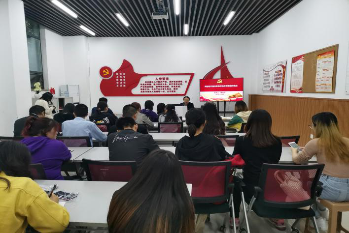 2019年10月24日下午,18漫画 开展“网络时代高校思想政治教育面临的挑战”主题党课学习会。外语学院党委副书记魏世平就大学思政教育工作如何迎接网络时代的挑战这一课题与同学们进行了交流,重点阐述在高校落实党建工作,推动思政教育需要坚持党的领导、加强党的建设的重要性,并围绕网络时代高校思想政治教育工作的新情况新问题为*18漫画 全体学生党员讲授专题党课。本科生支部辅导员张茹、吉克铁巫等参与此次党课学习会。