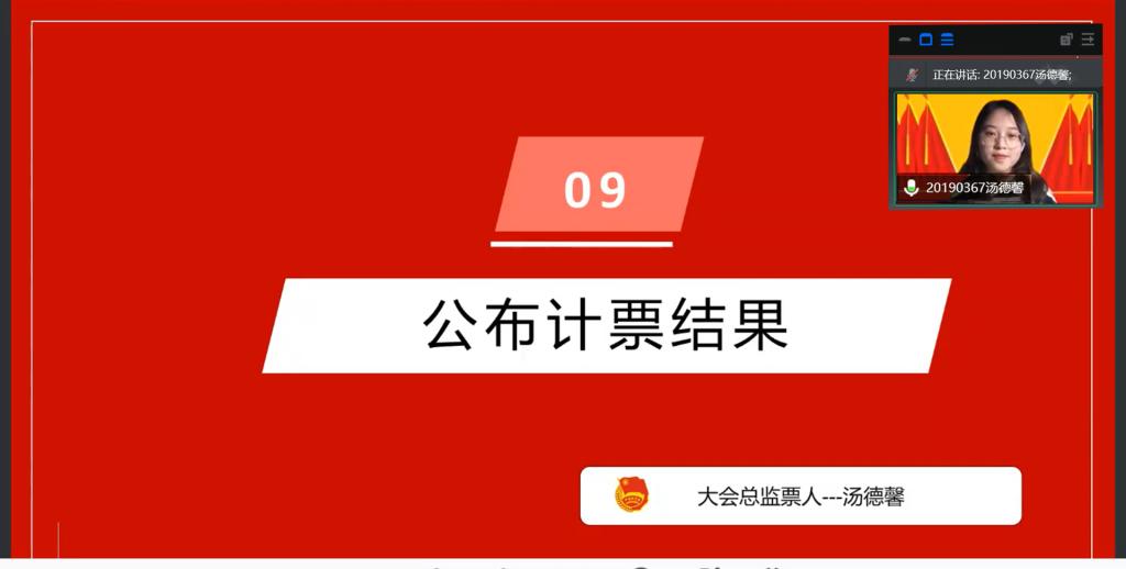 会议最后,院本科生党支部代表夏宁尉同志和测评团员代表汤德馨同志分布公布计票情况和计票结果。至此,本次会议圆满结束。