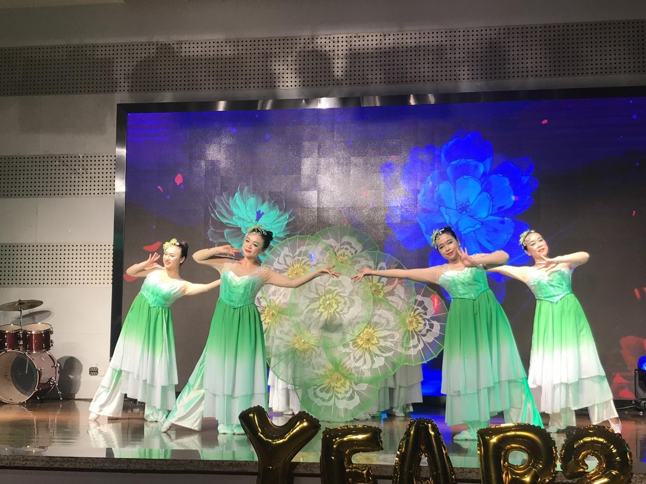 最为震撼和精彩的莫过于舞蹈高潮部分,所有舞者飞向了中心将手里的花伞撑开,共同拼成了一朵硕大而绚烂的茉莉花,盛开在大家的眼前,台下多次掌声响起!来自德国的外教Sonja忍不住赞叹老师们的表演太专业了,给她留下了非常深刻的印象!