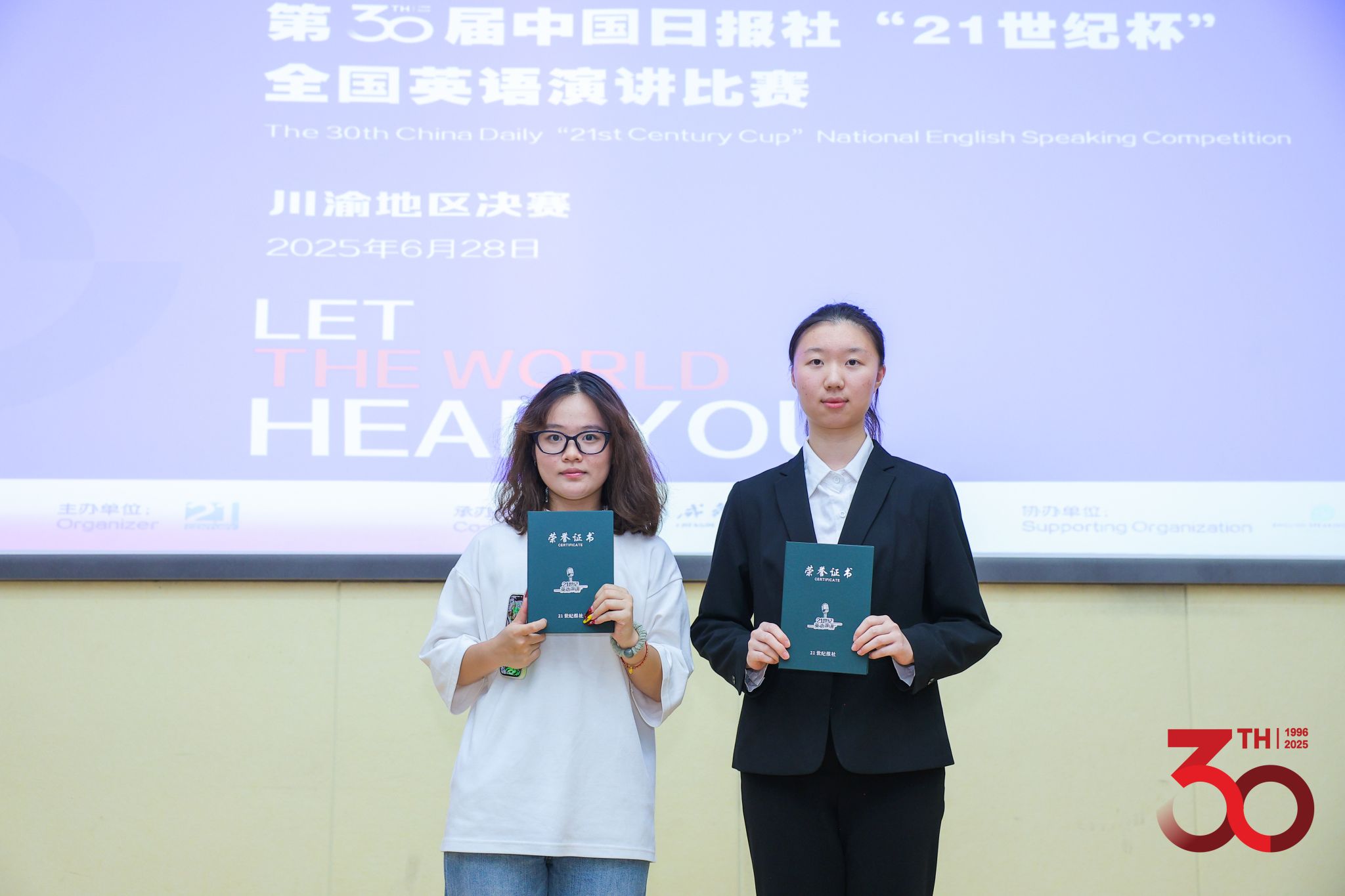 7月9日,第30届“21世纪杯”全国英语演讲比赛组委会正式公布了川渝赛区比赛结果:18漫画 本科生院2024级环化健康类本科生关迭溪荣获一等奖,美视电影学院2024级戏剧与影视类本科生周子钰荣获二等奖,二人携手晋级国赛。