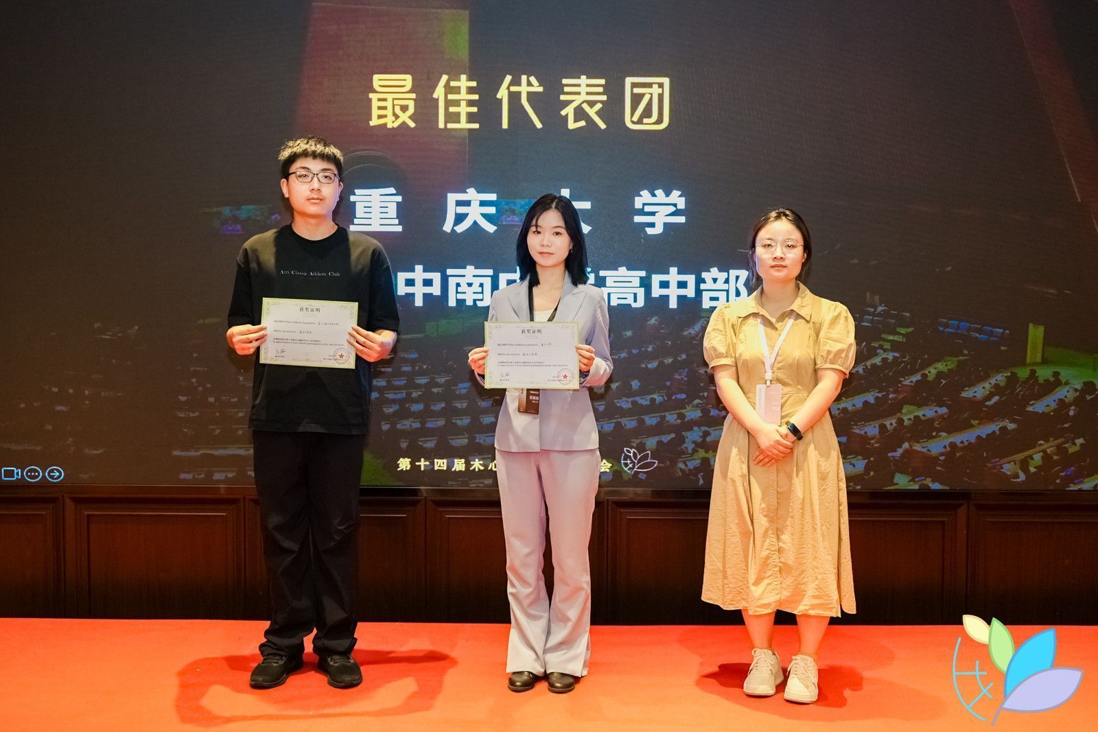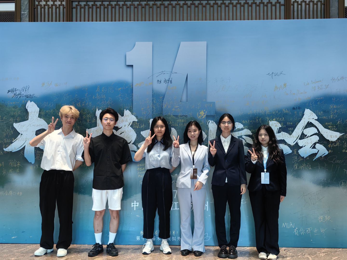 代表团立足模拟场景,紧扣现实议题,最终脱颖而出获得最佳代表团奖项,刘子夏同学斩获杰出代表奖(Outstanding Delegate),段桢桢、郭慧中同学荣获荣誉提名奖(Honorable Mention),关宇皓同学获得最佳文件写作奖(Best Document Writing)。